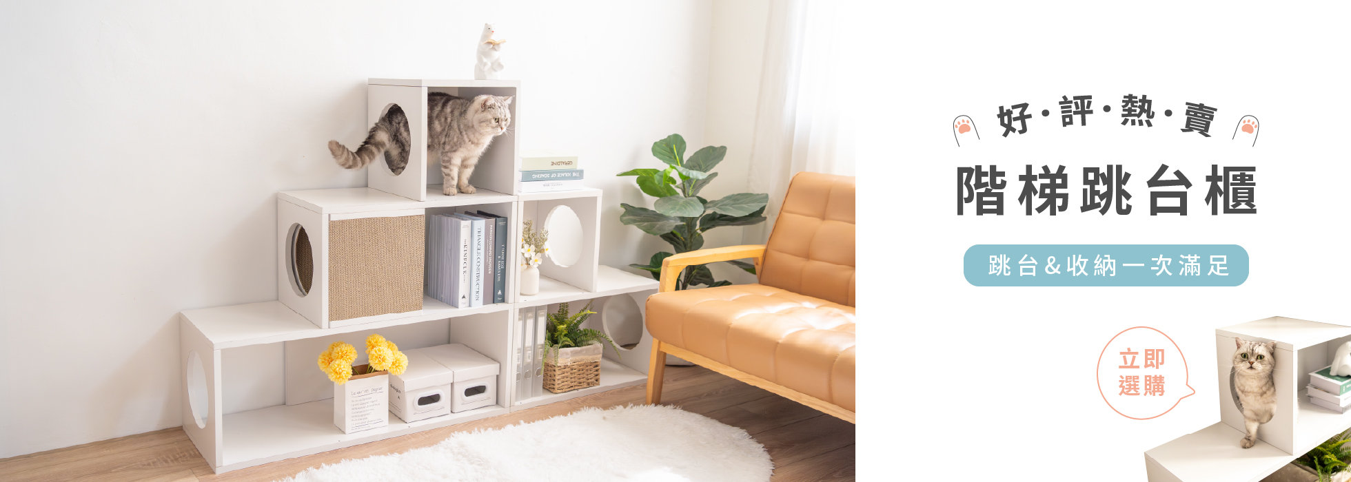 階梯跳台櫃/貓跳台/貓書櫃 (3層) | 清新白
