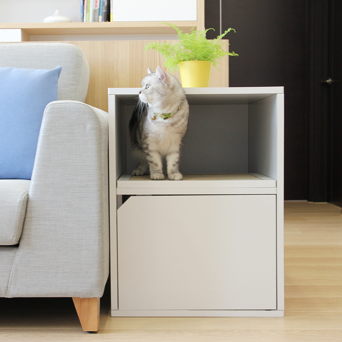 在各式各樣的生活細節中,貓砂的擺放以及處理是貓奴們最頭痛的事,尤其是個性活潑好動的貓咪,總是用奔跑跳躍的方式進出貓砂盆,使得貓砂盆裡的貓砂隨著貓爪跳出的力道一併潑灑出來,一時間煙霧瀰漫,彷彿沙塵暴一般把貓砂盆附近搞得黃沙滾滾,整理起來真的令人大崩潰 (。ŏ_ŏ) 如果您家的貓咪也是屬於這樣活潑好動的貓咪,試著選用貓砂櫃,也許可以解決日常清掃的問題喔!