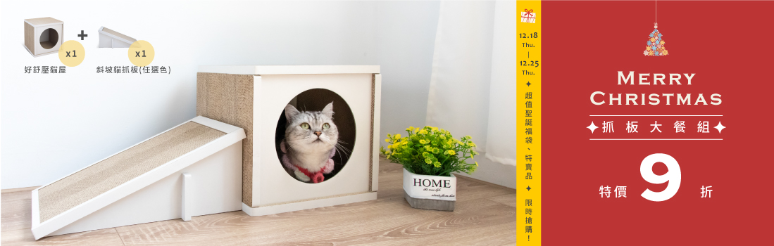 ★聖誕特惠★抓板大餐組 (好舒壓貓屋x1 + 斜坡貓抓板x1)